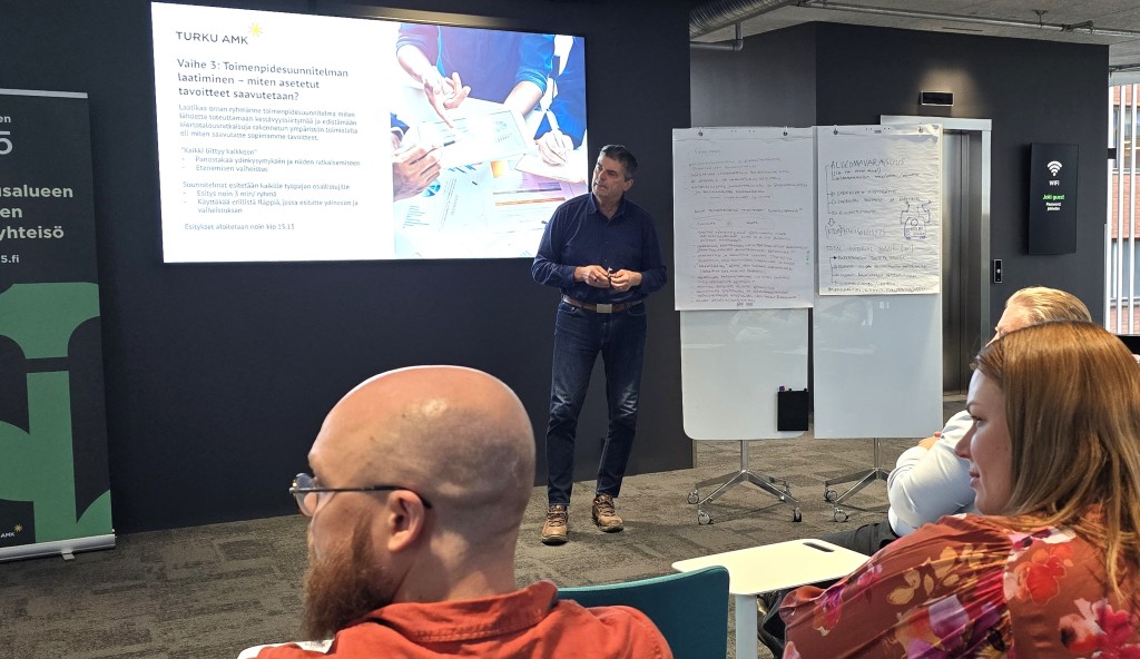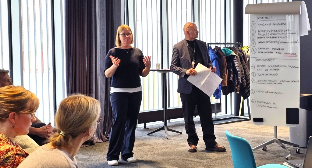 Työpajan ideana oli pohtia ja suunnitella rakennetun ympäristön kestävyyssiirtymää ajatuksella “Miltä näyttää maapallon kantokyvyn rajoissa toimiva kestävä ja kiertotalouden mukainen rakennettu ympäristö ja miltä se näyttää Turun alueella?”. Työpajan fasilitoi Nani Pajunen.